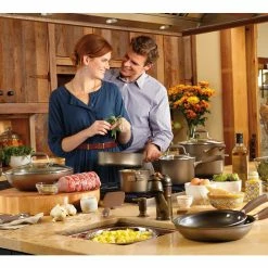 Adventurous cooks who enjoy experimenting with flavor combinations for crepes will love cooking with this Anolon Advanced Bronze Hard Anodized Nonstick 9.5 in. Crepe Pan. Model: 83324.
