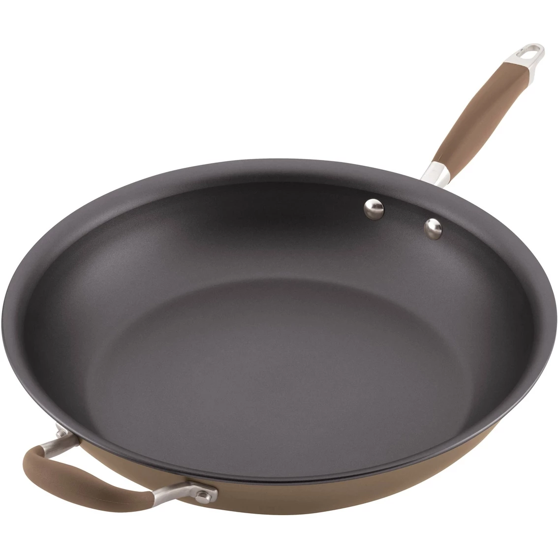 Prepare professional-quality entrees, one-dish meals and more with the spacious Anolon Advanced Bronze Hard-Anodized Nonstick 14 in. Skillet with Helper Handle.