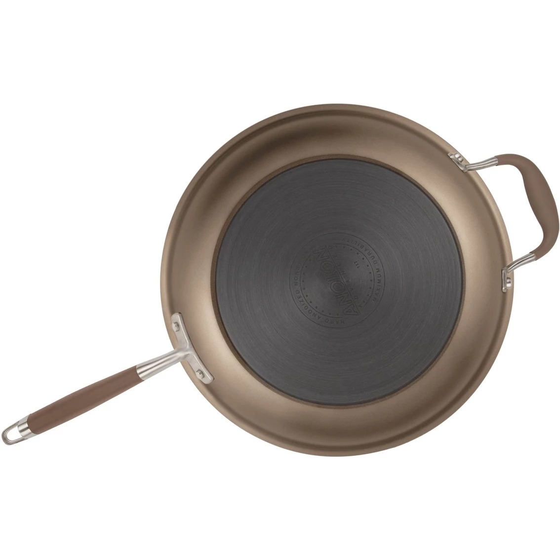 -With the extra-large Anolon Advanced Bronze Hard-Anodized Nonstick 14 in. Skillet with Helper Handle, cooks can prepare full-family skillet meals and more any day of the week.