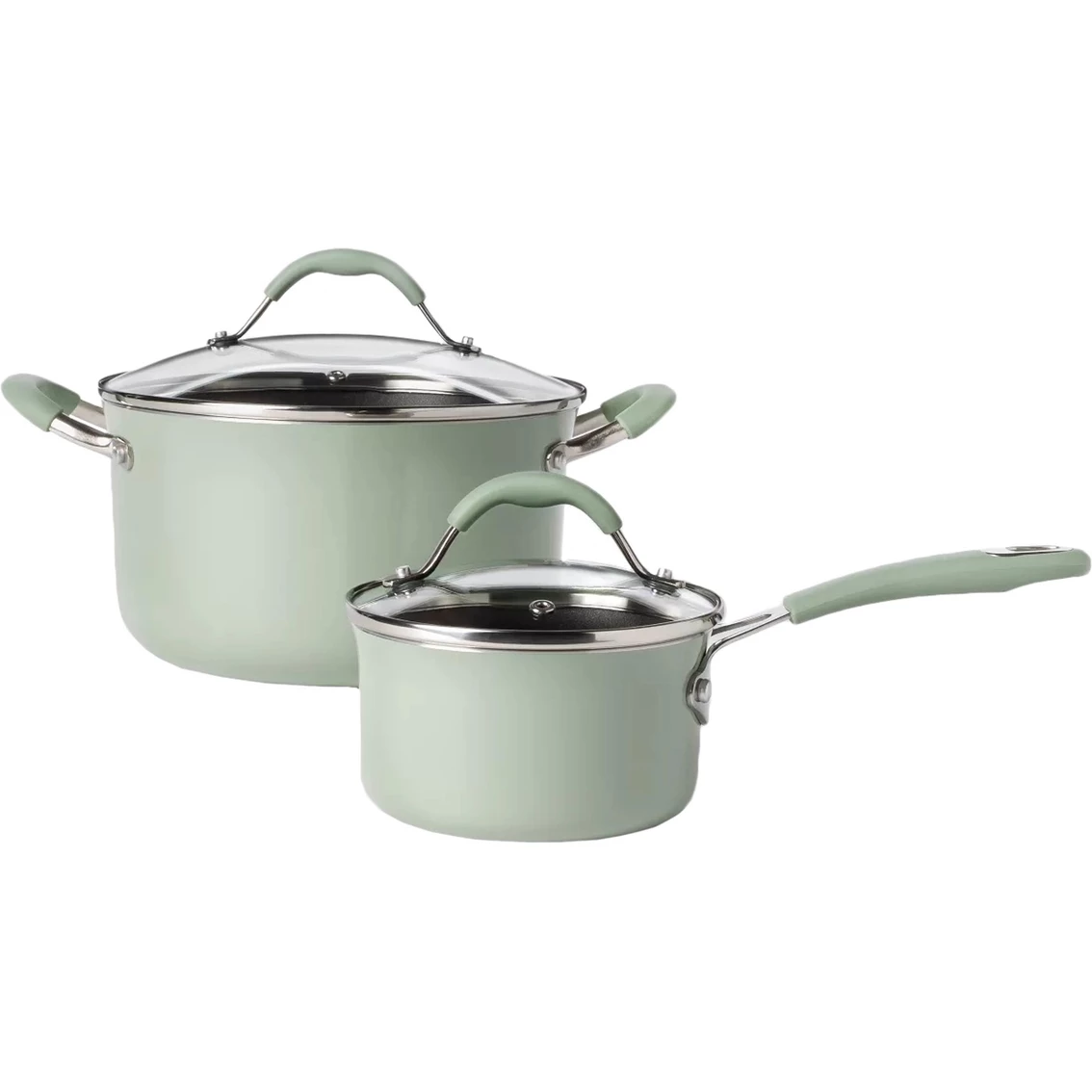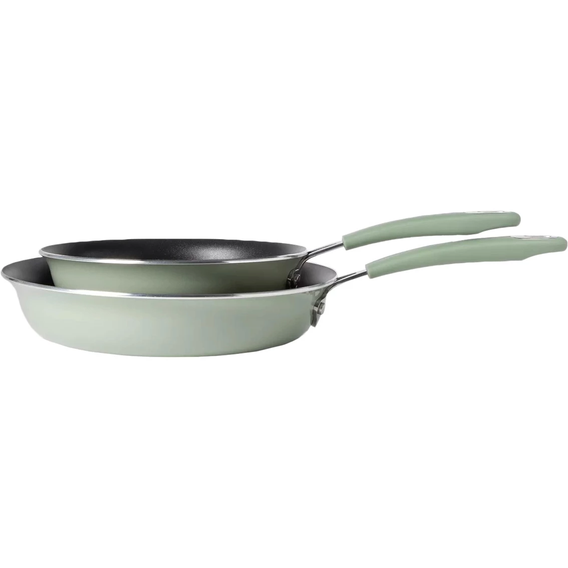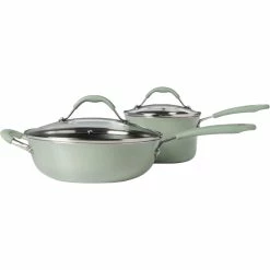 The Cravings by Chrissy Teigen 12 pc. Nonstick Aluminum Cookware Set includes all the pots, pans and tools you need for cooking and entertaining at home. Chrissy knows that you’ll reach for these cookware essentials time and time again! A gorgeous pistachio colored enamel finish elevates this everyday set from simple to stunning. The nonstick surface helps seal in rich flavor from meat, seafood, vegetables and more making this set your to-go choice for all your culinary creations.