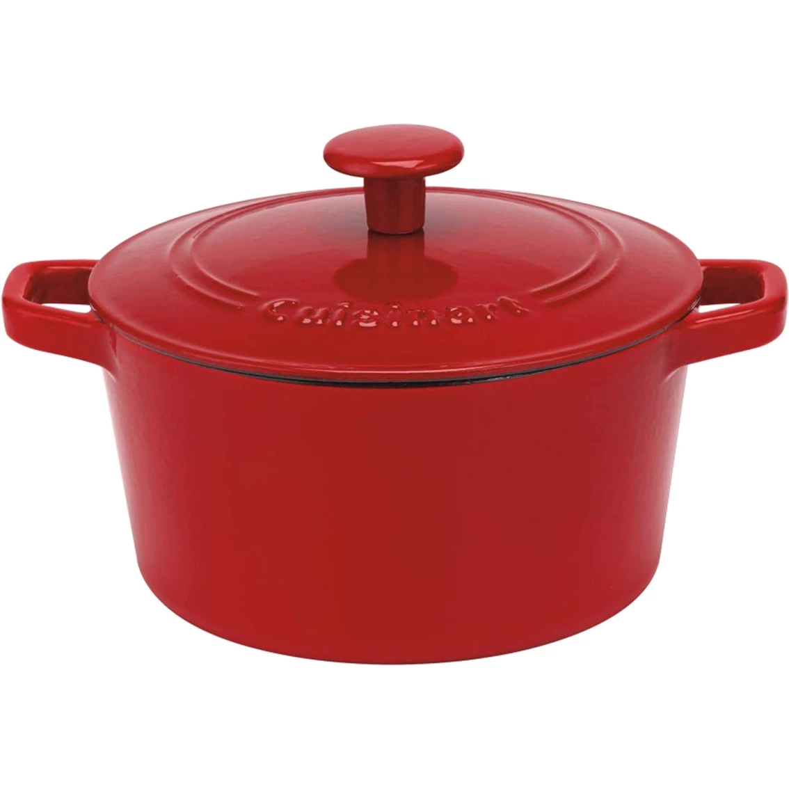 Cast iron improves its solid reputation with Cuisinart Chef’s Classic Enameled Cast Iron cookware! Home chefs can explore different cooking methods โ from searing or grilling in the pans to slow braising or simmering in the casseroles. With incredible heat retention and even heat distribution, these versatile pieces yield great results whether it’s on the stove or in the broiler or oven. They also can go from oven to table and double as elegant serving pieces! Model: CI630-20CR.