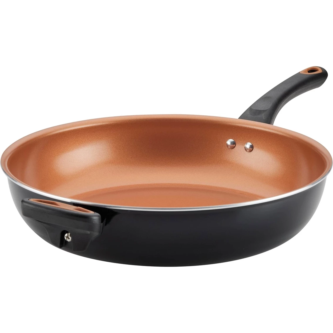 Outlet ๐ Farberware 12.5 In. Glide Copper Ceramic Nonstick Deep Skillet With Helper Handle ๐