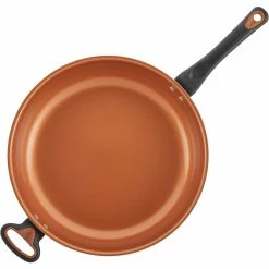 Outlet 🎁 Farberware 12.5 In. Glide Copper Ceramic Nonstick Deep Skillet With Helper Handle 🔔