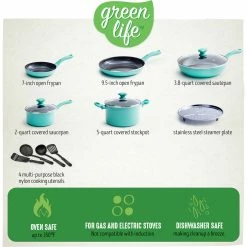 The GreenLife Diamond collection is where eye-catching style meets kitchen convenience. GreenLife paired this collection’s vibrant exterior with an upgraded ceramic nonstick coating that features exterior-matching diamonds.