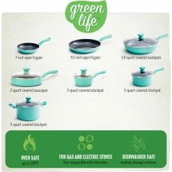 Diamonds are a cook’s best friend. This GreenLife saucepan’s ultra durable diamond-enhanced ceramic nonstick coating features colored diamonds that match the scratch-resistant exterior.