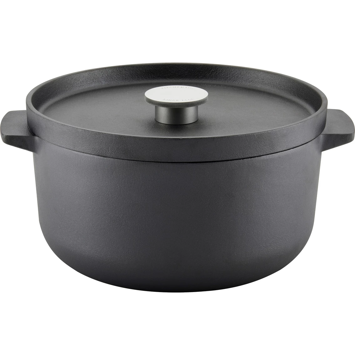 Slow cook, bake, or roast flavorful meals with the KitchenAid Seasoned Cast Iron Dutch Oven. Crafted from durable cast iron for its long-lasting performance, this kitchen work horse is designed to evenly distribute and retain heat. It will provide a lifetime of cooking casseroles, braising ribs and bread baking. The large, seasoned Dutch oven also comes with a self-basting lid to lock in steam, keeping foods moist. Plus the even heat of the cast iron is ideal for baking sourdough bread, cornbread and more. Induction compatible, broiler safe and oven safe to 500 degrees F, this durable cast iron Dutch oven can also be used on the grill or open fire for ultimate cooking versatility. Model: 48396.