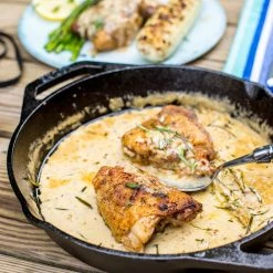 A modern twist on a timeless classic, this Lodge 12 in. Cast Iron Pan with two loop-style handles is easy to store and perfect for the grill. When cooking for a crowd, the compact design fits nicely in the oven and even better on the table. Model: L10SKL.