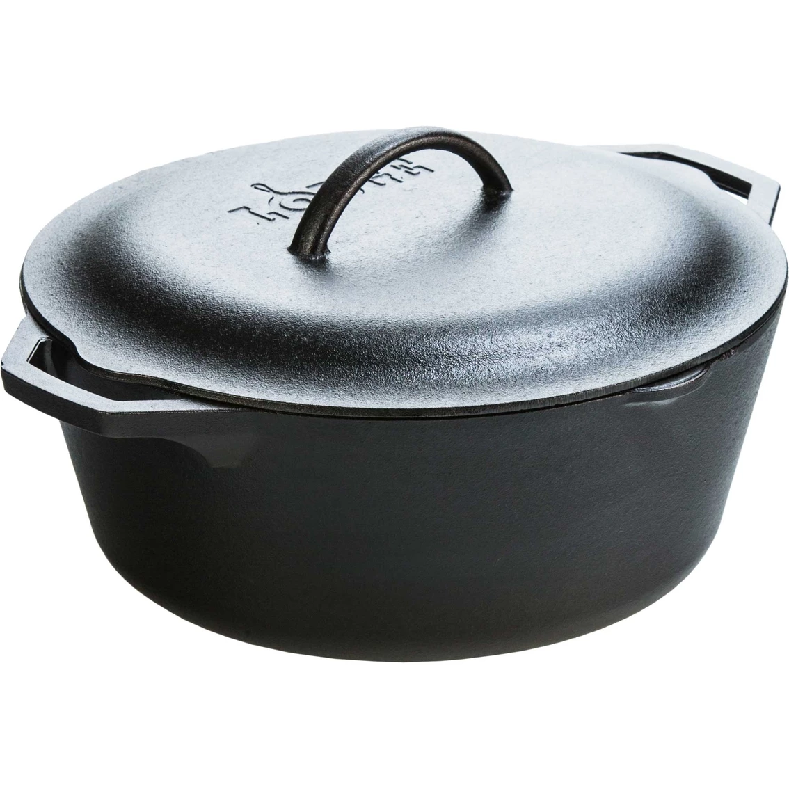 Raise your hand if you love to throw a party! With this Lodge Cast Iron 7 qt. Dutch Oven, youโll always have enough food. Easily move from cooking surface to table or counter, thanks to the bail handle design. Crafted in America with iron and oil, its large, naturally seasoned cooking surface is ready to help you deliver delicious, home-cooked moments.