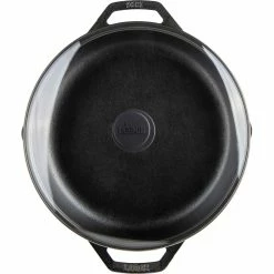 The Lodge 12 in. Seasoned Cast Iron Everyday Chef Pan features sloped sides for sauteing and stir frying. The tempered glass lid is light weight and allows for peeking without losing moisture and flavor. Add this everyday pan to your cookware and start whipping up professional quality meals in seconds. Model: LC12EP.