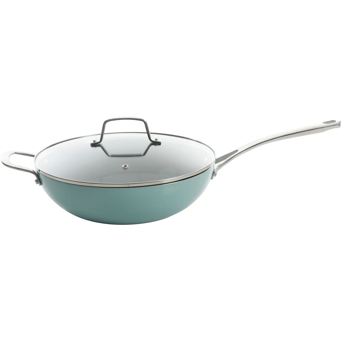 An everyday pan from Martha Stewart Collection designed to become a long-lasting companion to the home chef. Its reinforced triple-layered nonstick coating delivers ultimate performance and easy cleaning. Includes riveted cast handles for lasting durability. Its sturdy construction helps you get a little more joy out of cooking your favorite recipes. This pan features a lustrous porcelain enameled exterior that make this a delightful addition to any kitchen. Model: 129265.