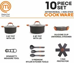 Be the MasterChef of your kitchen with the Master Chef Fusion Guard Cookware 10 pc. Set. With ten of the best cookware pieces including two classic pots and all the quality tools you need to make the best pasta, stews and curryβs you can imagine. The pieces are built with Fusion Guard technology to keep you safe and healthy.