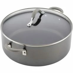 A shatter-resistant, tempered glass lid seals in heat and moisture and dual riveted stainless steel handles with sleek silicone grips provide a solid, comfortable grasp and are heat safe up to 400 degrees Fahrenheit. PFOA-free, metal utensil safe nonstick inside and out comes in a show-stopping oyster gray exterior color while delivering superior food release and super-easy cleanup of even the stickiest recipes.