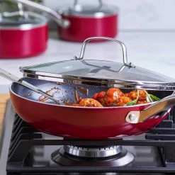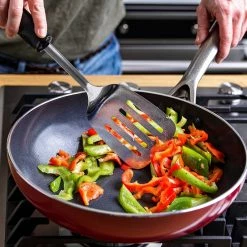 For this all-purpose chef’s pan, Red Volcano reached into the depths of the Earth to harness natureβs power. Red Volcano uses Lavaflow technology to fuse ceramic nonstick with plutonic rock, a dynamic substance formed by unbelievable heat and pressure. The pan’s textured nonstick coating spreads oil evenly for better frying, plus itβs 10x longer lasting and heats 5x faster than traditional coatings! Incredibly strong and long lasting, plutonic rock can even stand temperatures up to 1400 degrees F! This unique coating is specially designed to transfer heat quickly for unbelievable searing and browning, plus the texture enhances nonstick performance. Free of PFAS, PFOA, lead and cadmium, this coating is toxin-free so you can cook with worry. Designed for daily life, this pan is metal utensil safe. The heavy-gauge forged base keeps this pan from warping and wobbling and the pan is dishwasher safe for easy cleanup. Cook in the red zone!