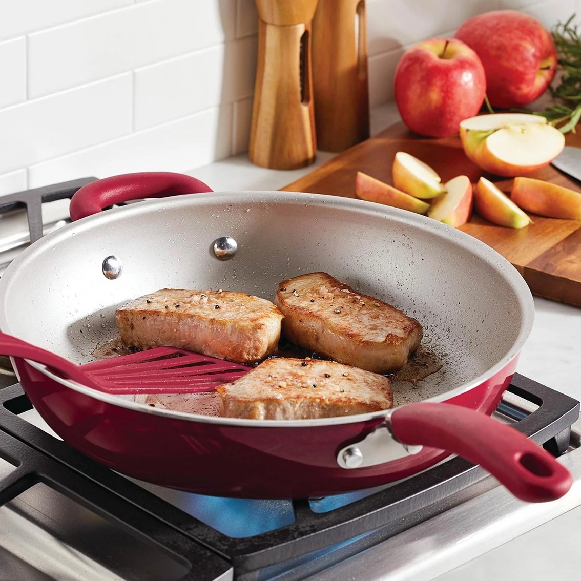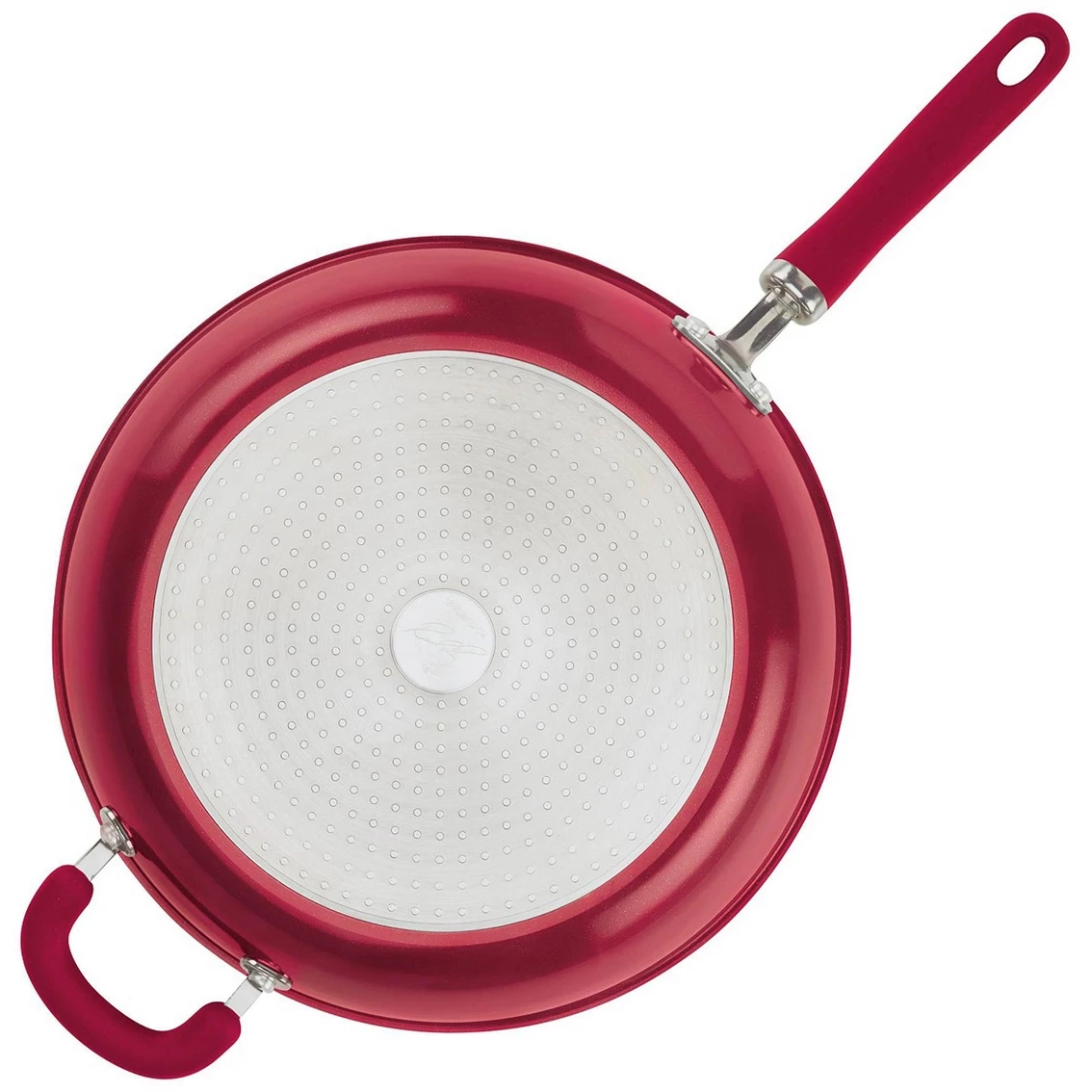Radiant and solution-oriented, the Rachael Ray Create Delicious 12.5 in. Aluminum Nonstick Deep Skillet brings high-performance and easy convenience to an essential pan made even more versatile with a deeper design.