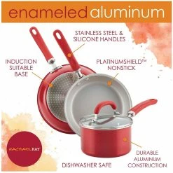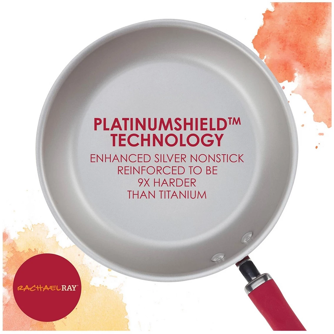 Featuring vibrant, shimmering color combined with value-driven functionality, this family-sized skillet brings on Rachael’s always-reliable performance with durable aluminum construction for ultra-even heating and browning. Made with higher sides for an enhanced cooking surface, this smart skillet features PlatinumShield Technology silver nonstick reinforced to be 9X harder than titanium for effortless food release of the stickiest recipes like Rach’s Spinach-Artichoke Cheesy Tortellini or her Peppers ‘n’ Potatoes Beef Skillet Supper. Even better, the skillet is dishwasher safe for quick and easy cleanup.