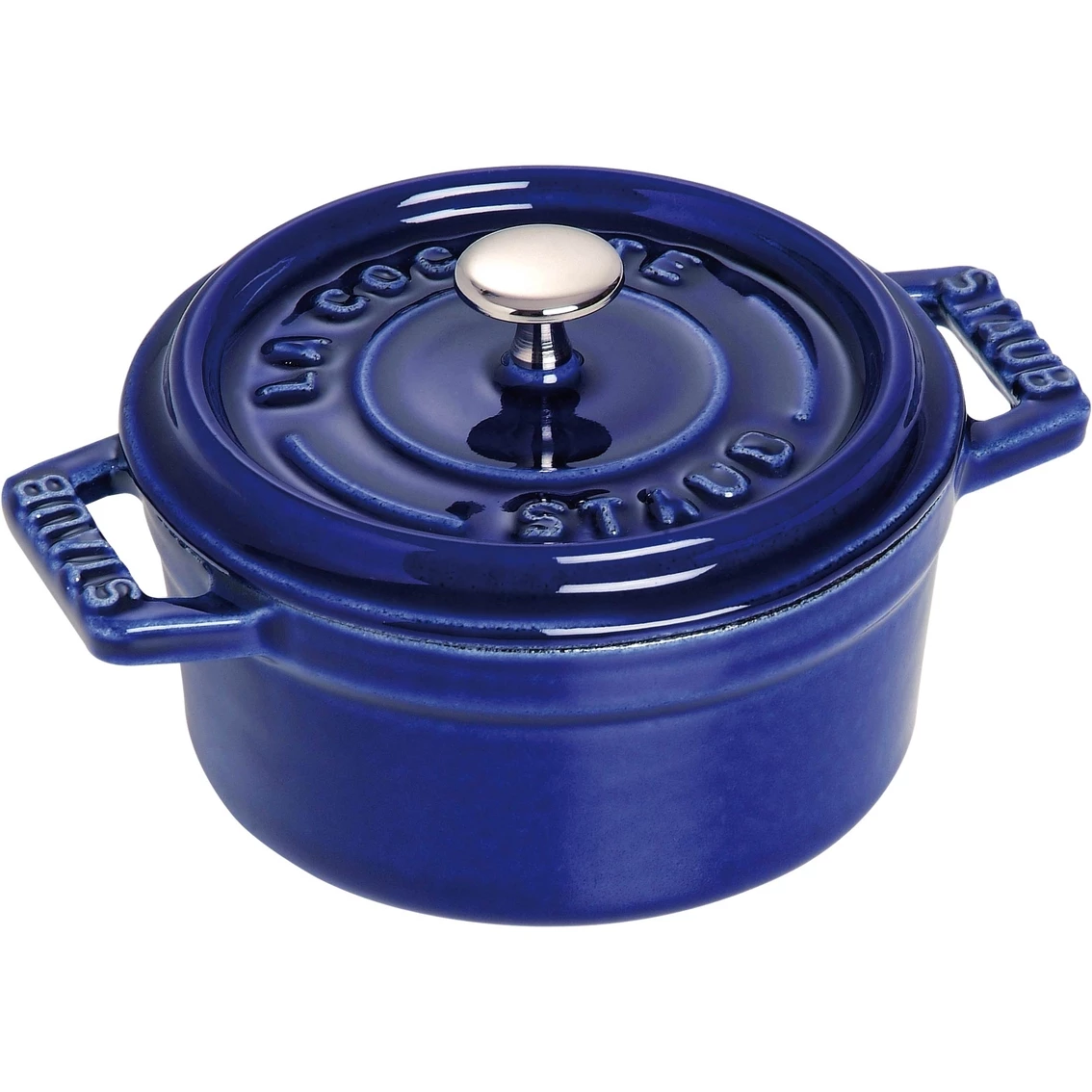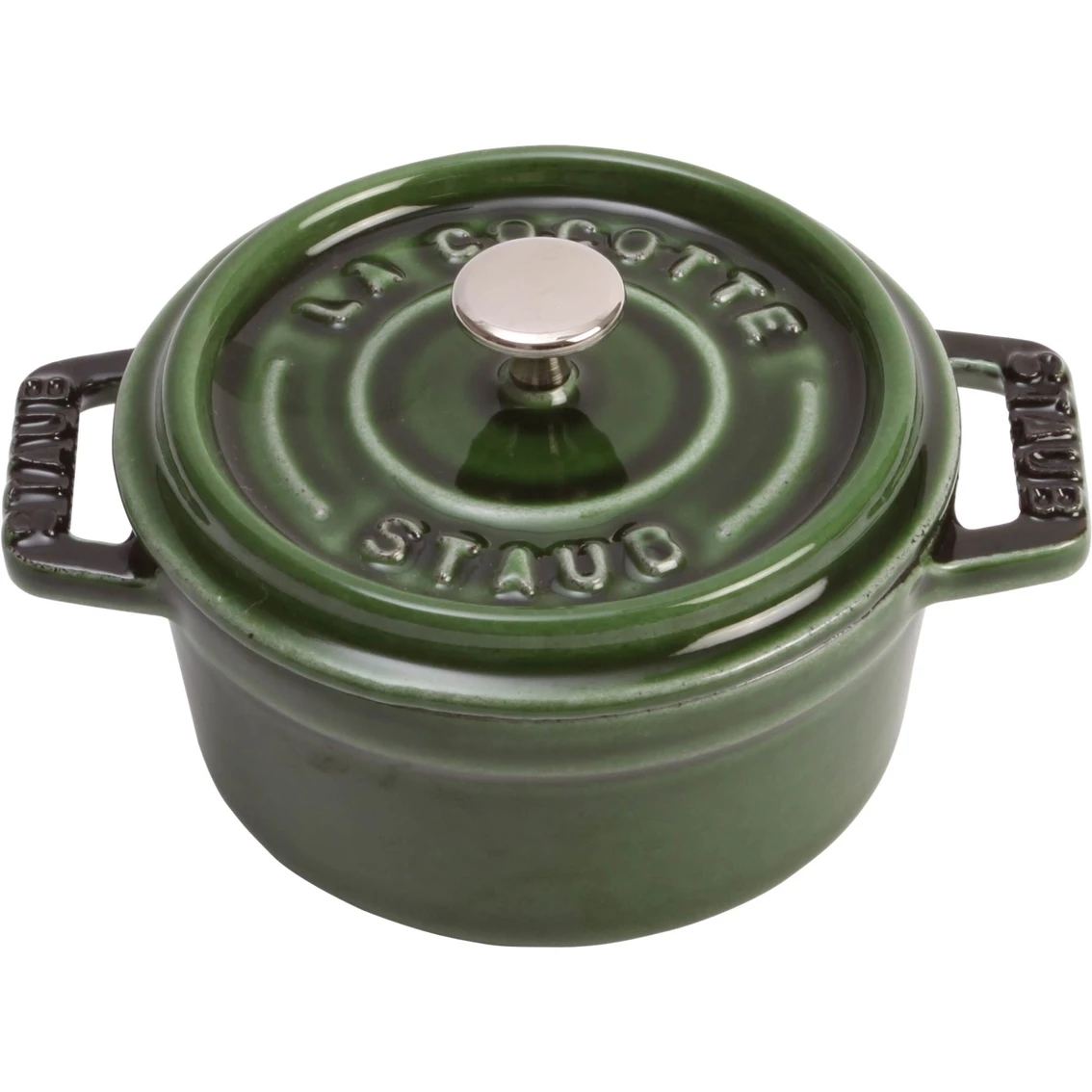 Cook and serve meals beautifully in this 0.25 quart mini cocotte from Staub. It features a vitreous glass porcelain enamel finish resistant to scratches and stains. An extremely fine polished base prevents damage to cooking surface or table. Exceptional heat retention. Ceramic features superior thermal shock and impact resistance. Oven, broiler, microwave, refrigerator, freezer and dishwasher safe. Model: 40511.