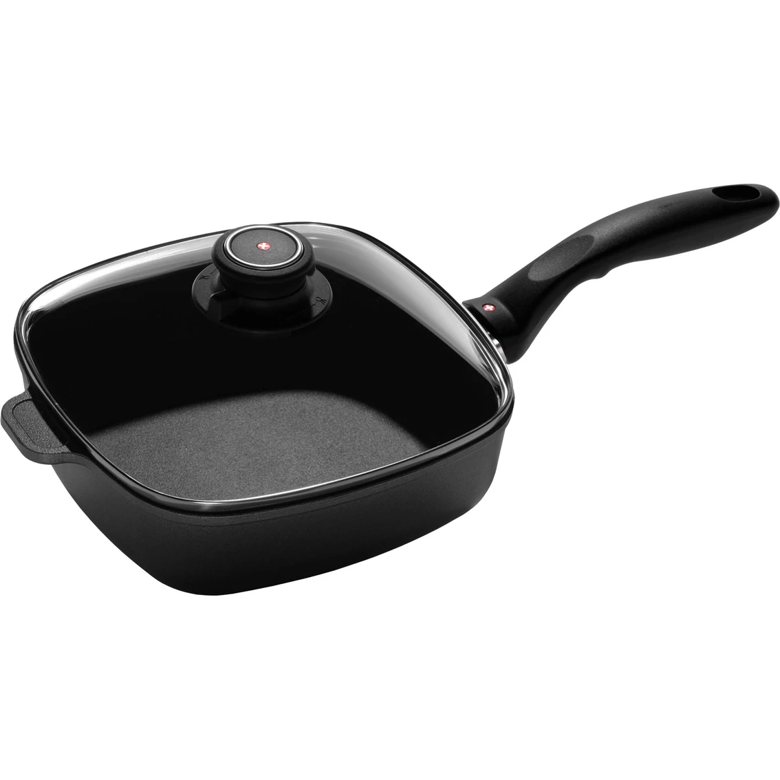 Nothing conducts heat better than diamonds. The Swiss Diamond XD Square Saute Pan’s nonstick coating works while you cook to maximize heat transfer, eliminating hot spots. Reinforced with the new and more advanced Swiss Diamond XD nonstick coating, this pan is in a league all its own. The Swiss Diamond XD nonstick coating contains 20 percent more diamonds creating a significantly tougher cooking surface with enhanced food release properties. Because the coating transfers heat to well, you never even need to use more than low to medium heat, reducing your energy consumption. This Saute Pan has an accurately trimmed bottom that is rounded to fit the standard stove eye, ensuring uniform heat distribution. Steam fresh vegetables using the heat-tempered glass lid, which features an adjustable steam vent that allows steam to be released or contained with the simple turn of the knob. The rivet-free cooking surface ensures maximum protection against bacteria, while the extra thick, cast aluminum body has a perfectly flat base that won’t spin or warp while cooking. This pan is also PFOA-free, providing a safe and non-toxic cooking base for your favorite meals. Model: XD6620C.